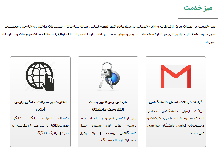 نمونه ای از صفحه میز خدمت